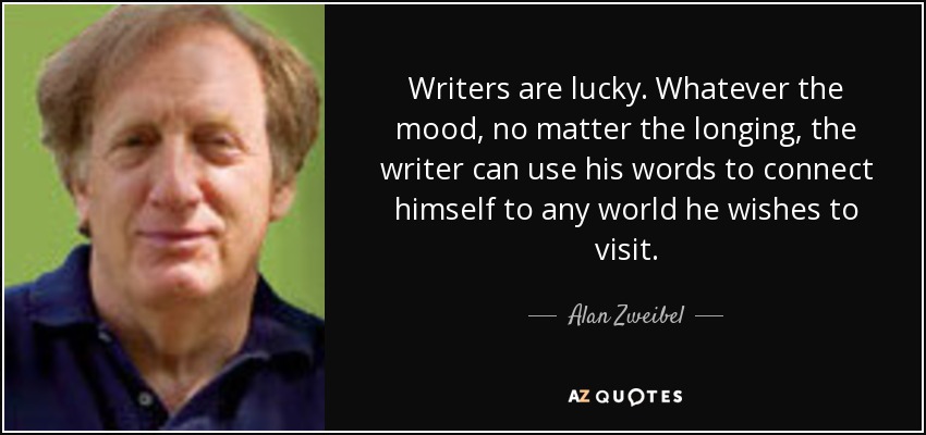 Writers are lucky. Whatever the mood, no matter the longing, the writer can use his words to connect himself to any world he wishes to visit.