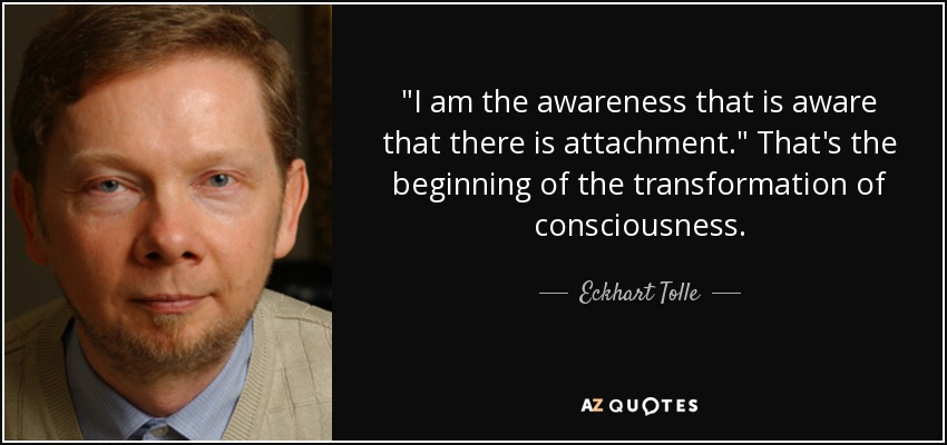 "I am the awareness that is aware that there is attachment." That's the beginning of the transformation of consciousness.