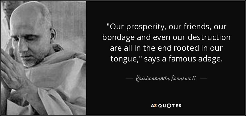"Our prosperity, our friends, our bondage and even our destruction are all in the end rooted in our tongue," says a famous adage.