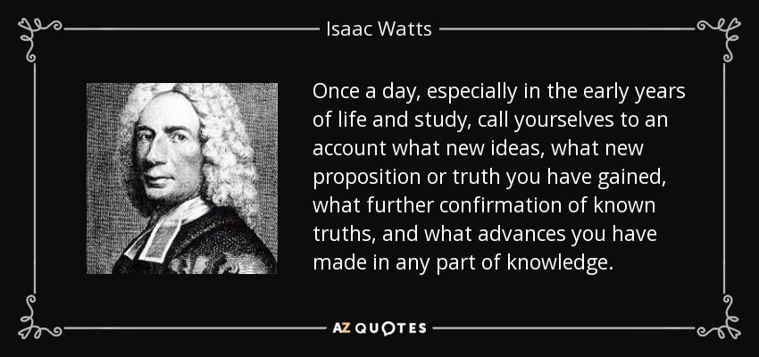Once a day, especially in the early years of life and study, call yourselves to an account what new ideas, what new proposition or truth you have gained, what further confirmation of known truths, and what advances you have made in any part of knowledge.