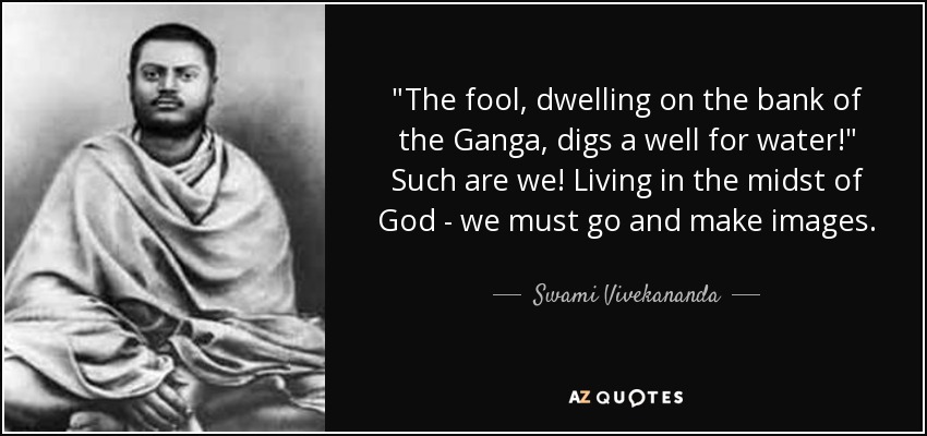 "The fool, dwelling on the bank of the Ganga, digs a well for water!" Such are we! Living in the midst of God - we must go and make images.