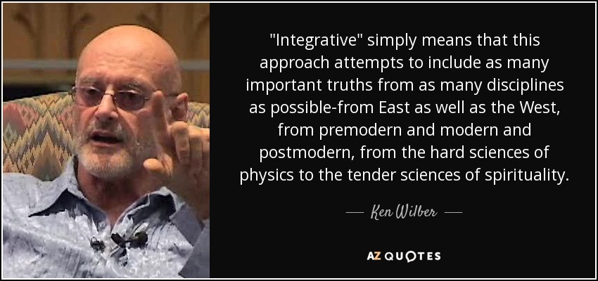 "Integrative" simply means that this approach attempts to include as many important truths from as many disciplines as possible-from East as well as the West, from premodern and modern and postmodern, from the hard sciences of physics to the tender sciences of spirituality.