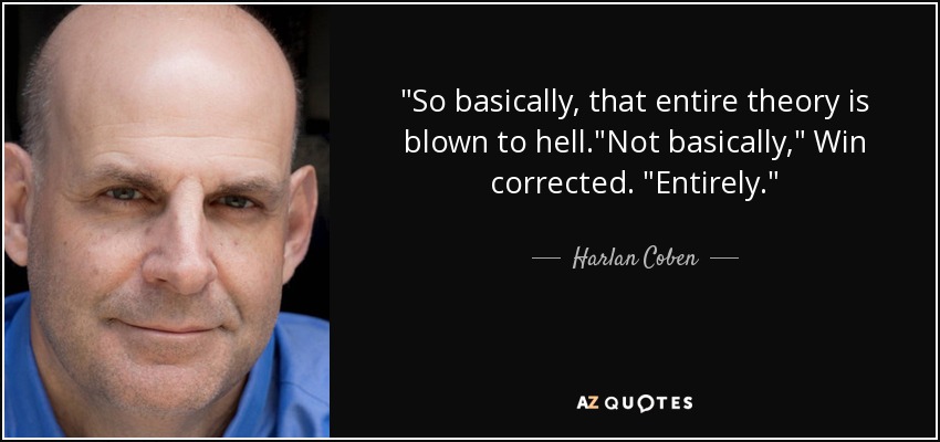 "So basically, that entire theory is blown to hell."Not basically," Win corrected. "Entirely."