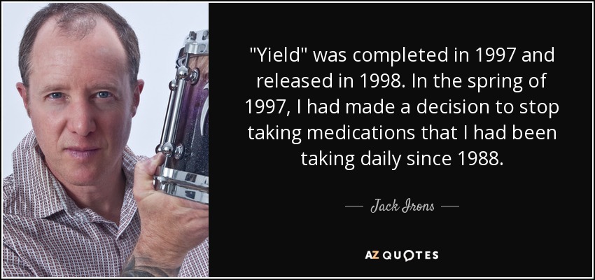 "Yield" was completed in 1997 and released in 1998. In the spring of 1997, I had made a decision to stop taking medications that I had been taking daily since 1988.