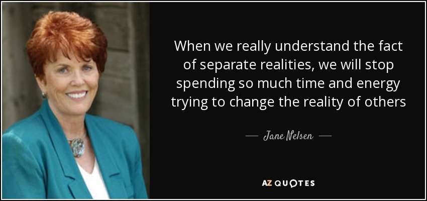 When we really understand the fact of separate realities, we will stop spending so much time and energy trying to change the reality of others