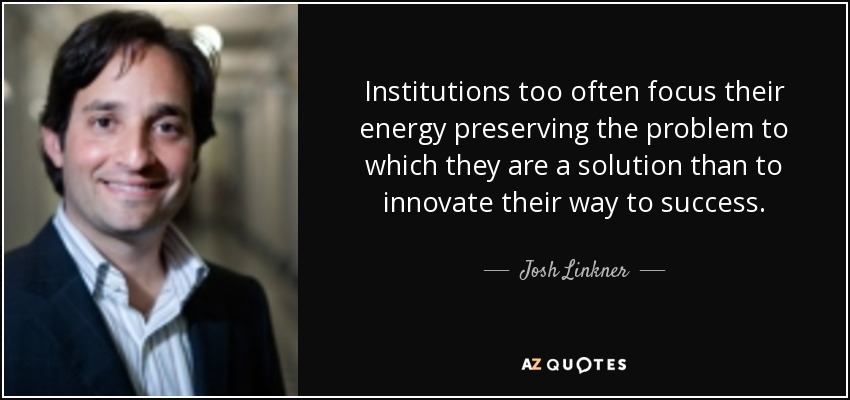 Institutions too often focus their energy preserving the problem to which they are a solution than to innovate their way to success.