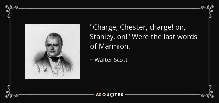 "Charge, Chester, charge! on, Stanley, on!" Were the last words of Marmion.