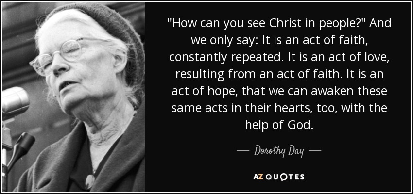 "How can you see Christ in people?" And we only say: It is an act of faith, constantly repeated. It is an act of love, resulting from an act of faith. It is an act of hope, that we can awaken these same acts in their hearts, too, with the help of God.