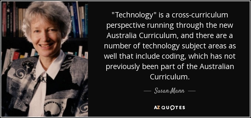 "Technology" is a cross-curriculum perspective running through the new Australia Curriculum, and there are a number of technology subject areas as well that include coding, which has not previously been part of the Australian Curriculum.
