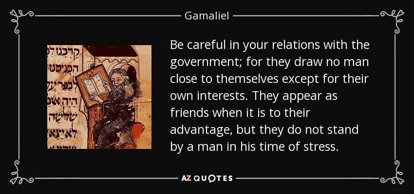 Be careful in your relations with the government; for they draw no man close to themselves except for their own interests. They appear as friends when it is to their advantage, but they do not stand by a man in his time of stress.
