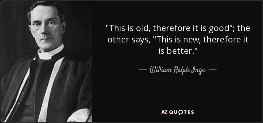 "This is old, therefore it is good"; the other says, "This is new, therefore it is better."