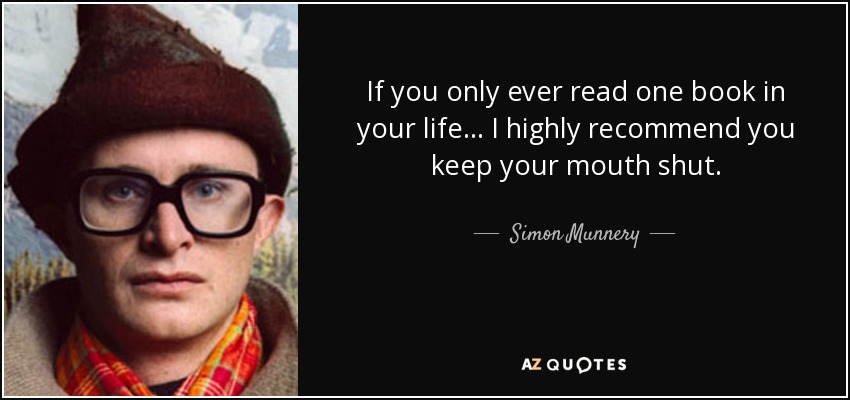 If you only ever read one book in your life ... I highly recommend you keep your mouth shut.