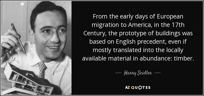 From the early days of European migration to America, in the 17th Century, the prototype of buildings was based on English precedent, even if mostly translated into the locally available material in abundance: timber.