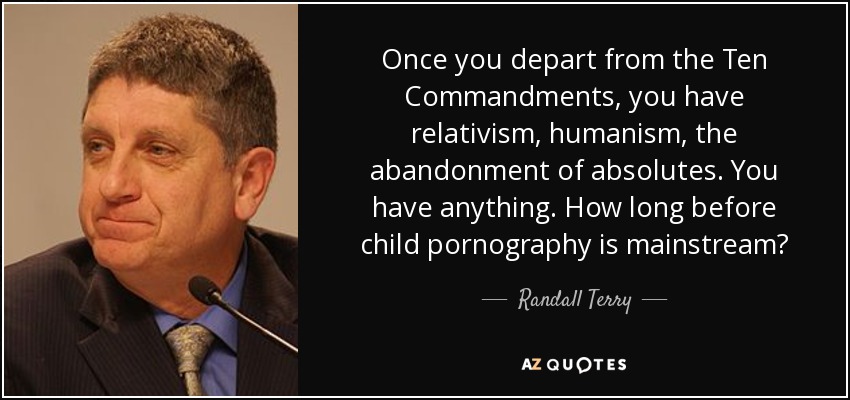 Once you depart from the Ten Commandments, you have relativism, humanism, the abandonment of absolutes. You have anything. How long before child pornography is mainstream?