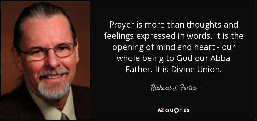 Prayer is more than thoughts and feelings expressed in words. It is the opening of mind and heart - our whole being to God our Abba Father. It is Divine Union.