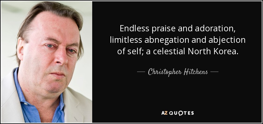 Endless praise and adoration, limitless abnegation and abjection of self; a celestial North Korea.