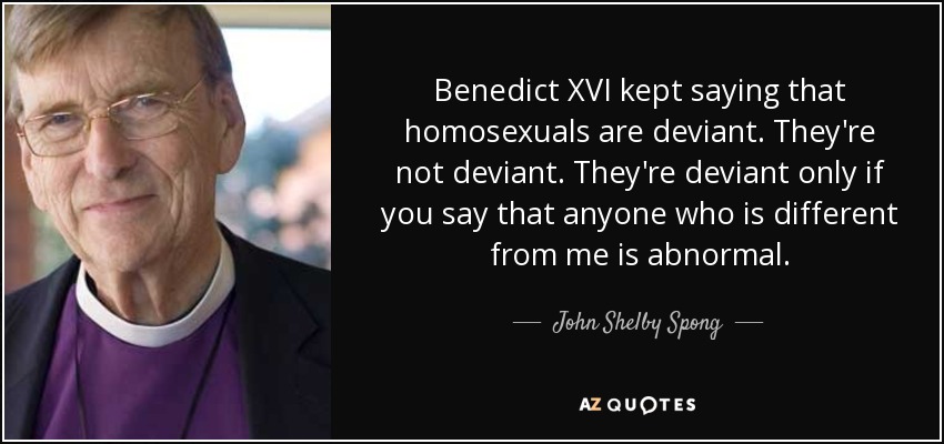 Benedict XVI kept saying that homosexuals are deviant. They're not deviant. They're deviant only if you say that anyone who is different from me is abnormal.