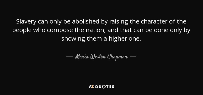Slavery can only be abolished by raising the character of the people who compose the nation; and that can be done only by showing them a higher one.