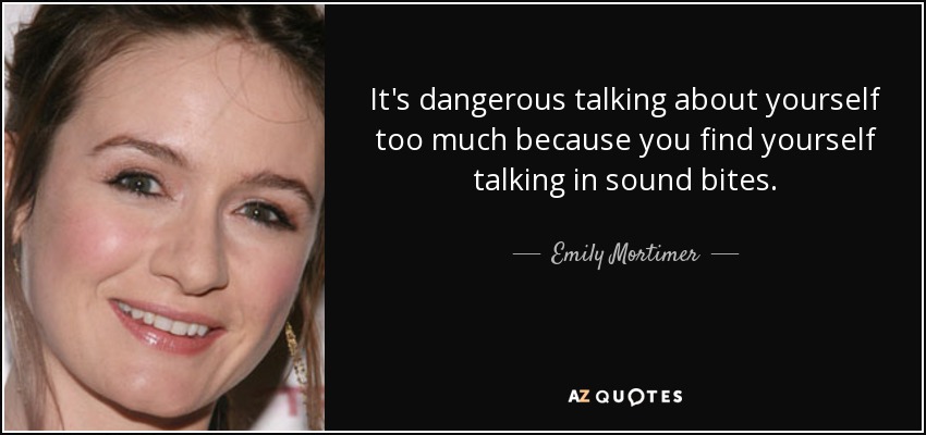It's dangerous talking about yourself too much because you find yourself talking in sound bites.