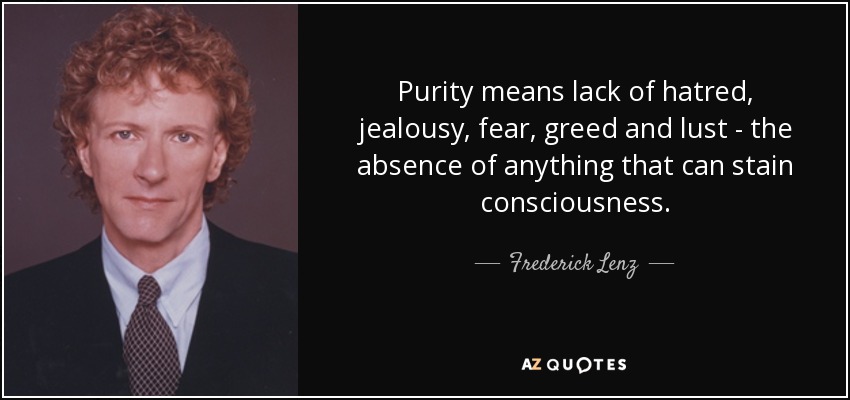 Purity means lack of hatred, jealousy, fear, greed and lust - the absence of anything that can stain consciousness.