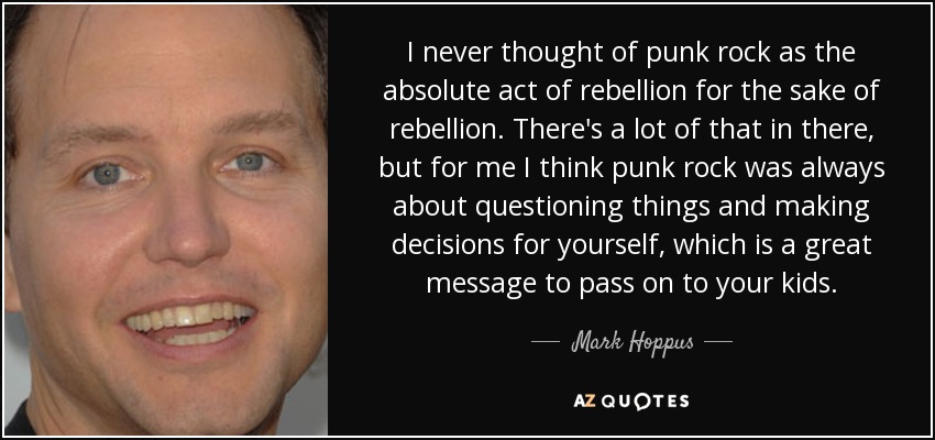 I never thought of punk rock as the absolute act of rebellion for the sake of rebellion. There's a lot of that in there, but for me I think punk rock was always about questioning things and making decisions for yourself, which is a great message to pass on to your kids.