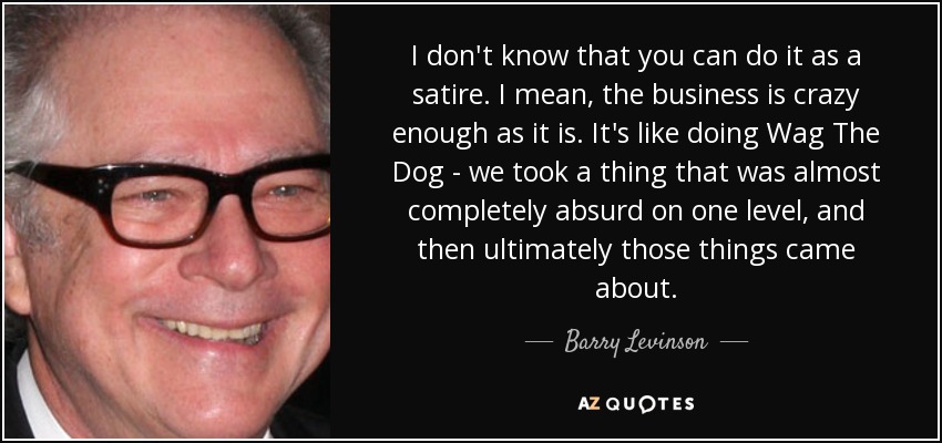 I don't know that you can do it as a satire. I mean, the business is crazy enough as it is. It's like doing Wag The Dog - we took a thing that was almost completely absurd on one level, and then ultimately those things came about.