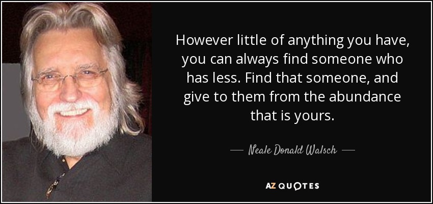 However little of anything you have, you can always find someone who has less. Find that someone, and give to them from the abundance that is yours.