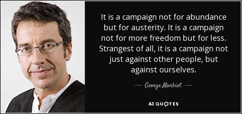 It is a campaign not for abundance but for austerity. It is a campaign not for more freedom but for less. Strangest of all, it is a campaign not just against other people, but against ourselves.