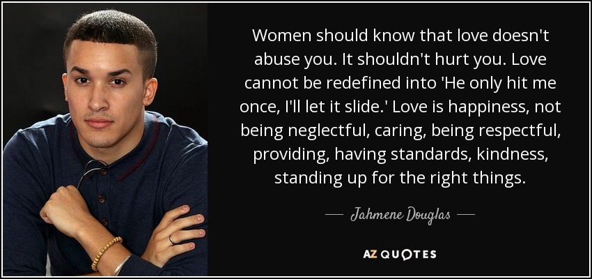 Women should know that love doesn't abuse you. It shouldn't hurt you. Love cannot be redefined into 'He only hit me once, I'll let it slide.' Love is happiness, not being neglectful, caring, being respectful, providing, having standards, kindness, standing up for the right things.