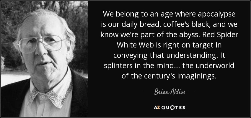We belong to an age where apocalypse is our daily bread, coffee's black, and we know we're part of the abyss. Red Spider White Web is right on target in conveying that understanding. It splinters in the mind... the underworld of the century's imaginings.