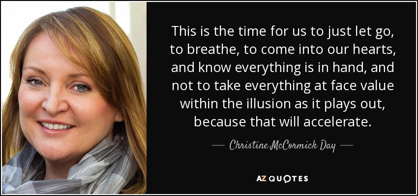 This is the time for us to just let go, to breathe, to come into our hearts, and know everything is in hand, and not to take everything at face value within the illusion as it plays out, because that will accelerate.