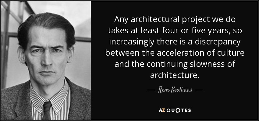 Any architectural project we do takes at least four or five years, so increasingly there is a discrepancy between the acceleration of culture and the continuing slowness of architecture.