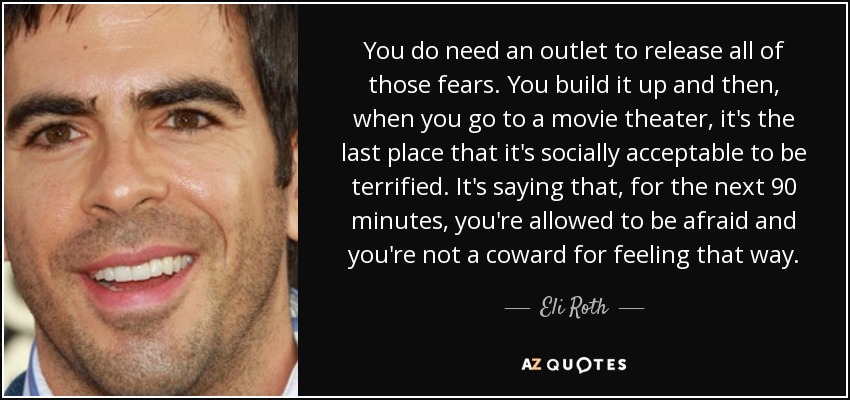 You do need an outlet to release all of those fears. You build it up and then, when you go to a movie theater, it's the last place that it's socially acceptable to be terrified. It's saying that, for the next 90 minutes, you're allowed to be afraid and you're not a coward for feeling that way.