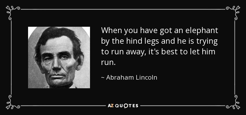When you have got an elephant by the hind legs and he is trying to run away, it's best to let him run.
