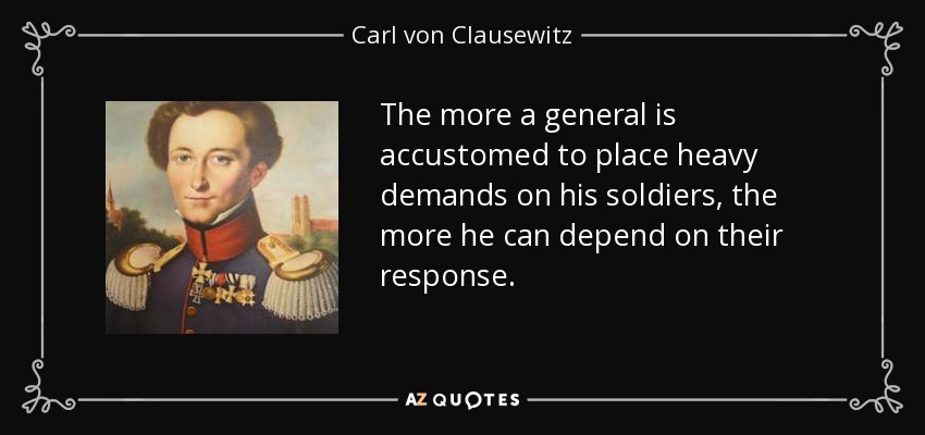 The more a general is accustomed to place heavy demands on his soldiers, the more he can depend on their response.