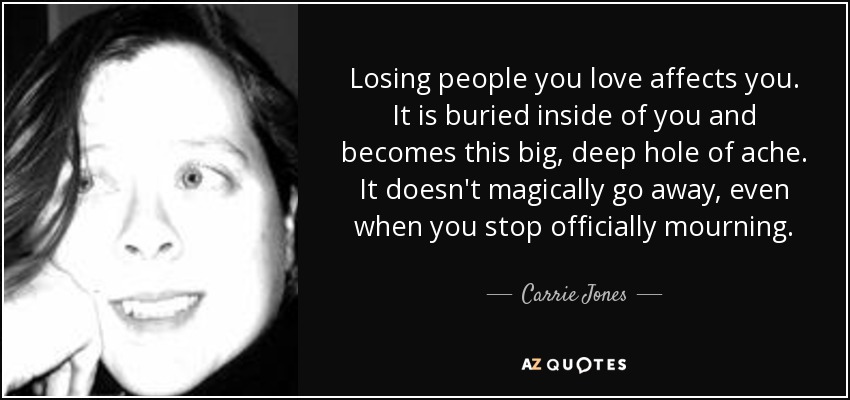 Losing people you love affects you. It is buried inside of you and becomes this big, deep hole of ache. It doesn't magically go away, even when you stop officially mourning.