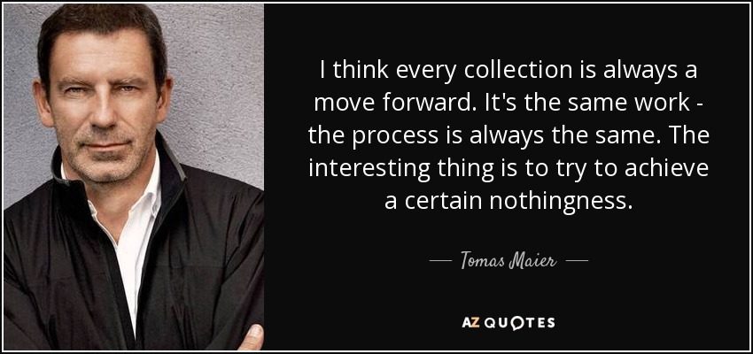 I think every collection is always a move forward. It's the same work - the process is always the same. The interesting thing is to try to achieve a certain nothingness.