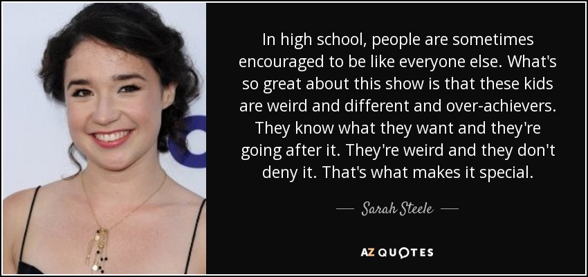In high school, people are sometimes encouraged to be like everyone else. What's so great about this show is that these kids are weird and different and over-achievers. They know what they want and they're going after it. They're weird and they don't deny it. That's what makes it special.