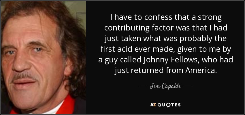 I have to confess that a strong contributing factor was that I had just taken what was probably the first acid ever made, given to me by a guy called Johnny Fellows, who had just returned from America.