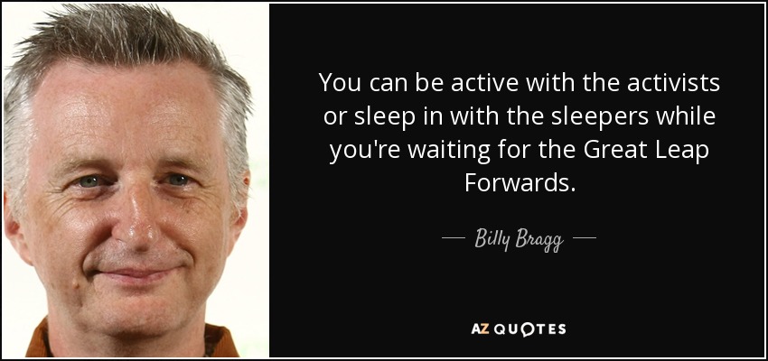 You can be active with the activists or sleep in with the sleepers while you're waiting for the Great Leap Forwards.
