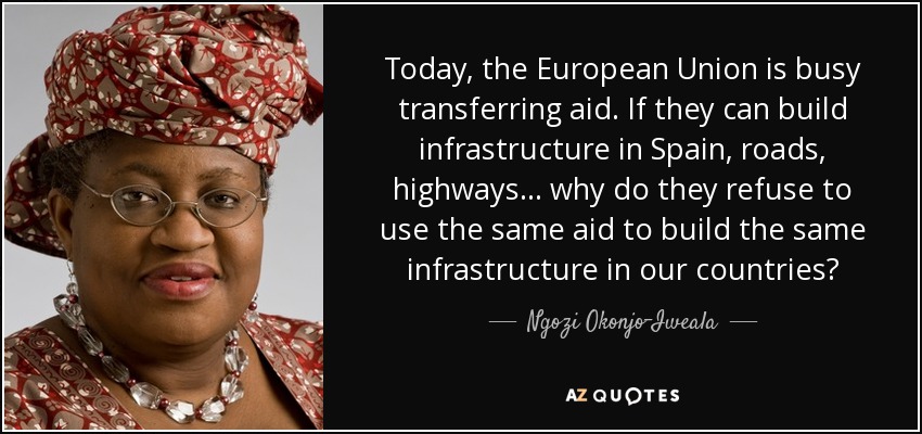 Today, the European Union is busy transferring aid. If they can build infrastructure in Spain, roads, highways ... why do they refuse to use the same aid to build the same infrastructure in our countries?
