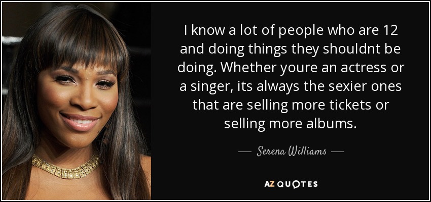 I know a lot of people who are 12 and doing things they shouldnt be doing. Whether youre an actress or a singer, its always the sexier ones that are selling more tickets or selling more albums.