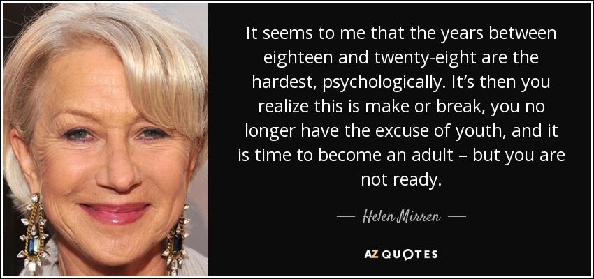 It seems to me that the years between eighteen and twenty-eight are the hardest, psychologically. It’s then you realize this is make or break, you no longer have the excuse of youth, and it is time to become an adult – but you are not ready.