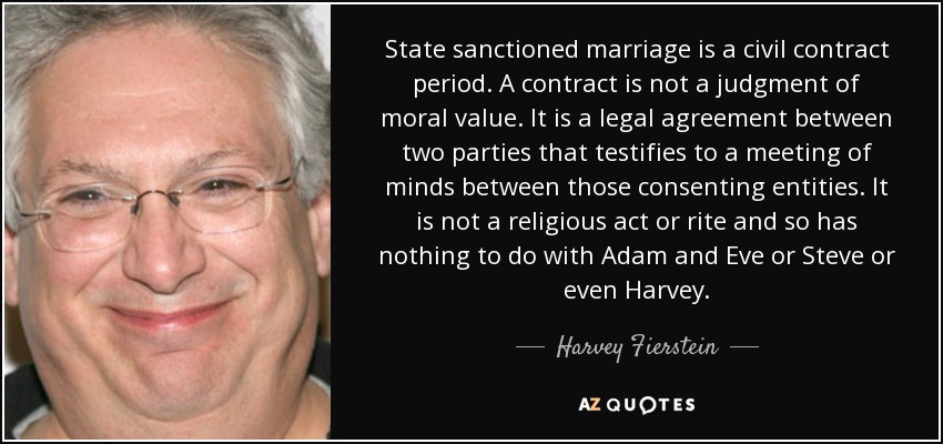 State sanctioned marriage is a civil contract period. A contract is not a judgment of moral value. It is a legal agreement between two parties that testifies to a meeting of minds between those consenting entities. It is not a religious act or rite and so has nothing to do with Adam and Eve or Steve or even Harvey.
