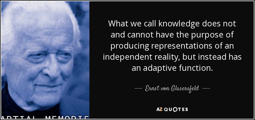 What we call knowledge does not and cannot have the purpose of producing representations of an independent reality, but instead has an adaptive function.