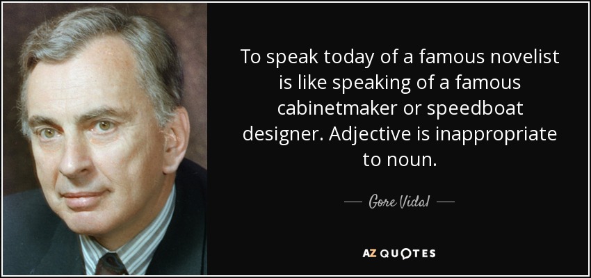 To speak today of a famous novelist is like speaking of a famous cabinetmaker or speedboat designer. Adjective is inappropriate to noun.