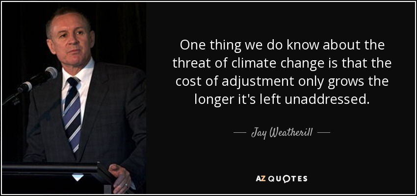 One thing we do know about the threat of climate change is that the cost of adjustment only grows the longer it's left unaddressed.