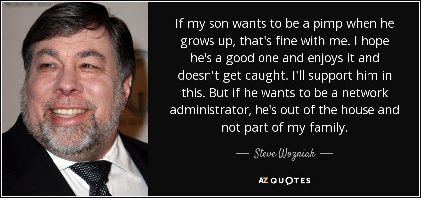 If my son wants to be a pimp when he grows up, that's fine with me. I hope he's a good one and enjoys it and doesn't get caught. I'll support him in this. But if he wants to be a network administrator, he's out of the house and not part of my family.