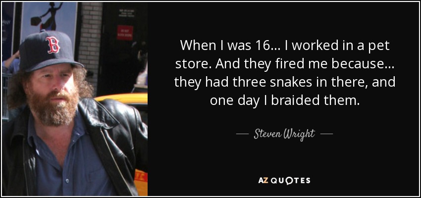 When I was 16... I worked in a pet store. And they fired me because... they had three snakes in there, and one day I braided them.