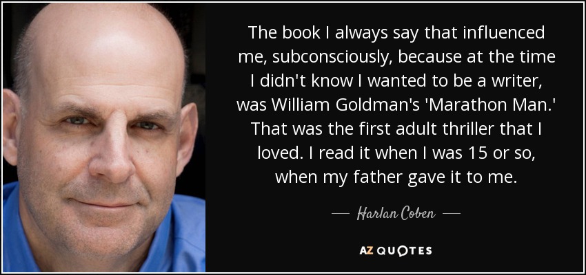 The book I always say that influenced me, subconsciously, because at the time I didn't know I wanted to be a writer, was William Goldman's 'Marathon Man.' That was the first adult thriller that I loved. I read it when I was 15 or so, when my father gave it to me.